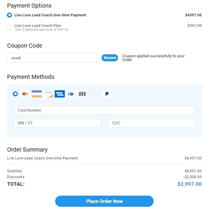 When you choose to pay your Live Love Lead Coach tuition in full, you will save $585 and you will also get one (1) additional ticket to attend the Live Love Lead Coach LIVE Event.